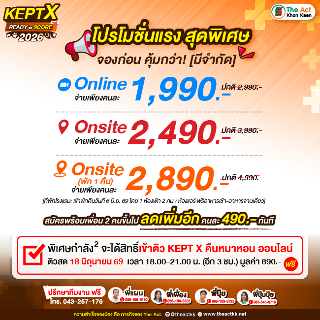☑︎ ออนไลน์: เพียงคนละ 1,990.- (ปกติ 2,990.-)