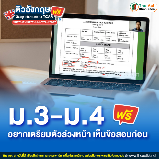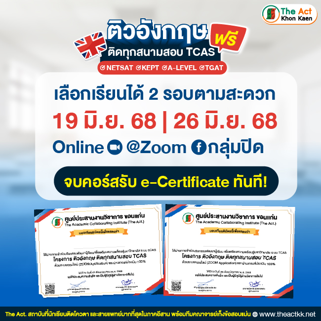 Free tutoring - Online: English for all TCAS exams