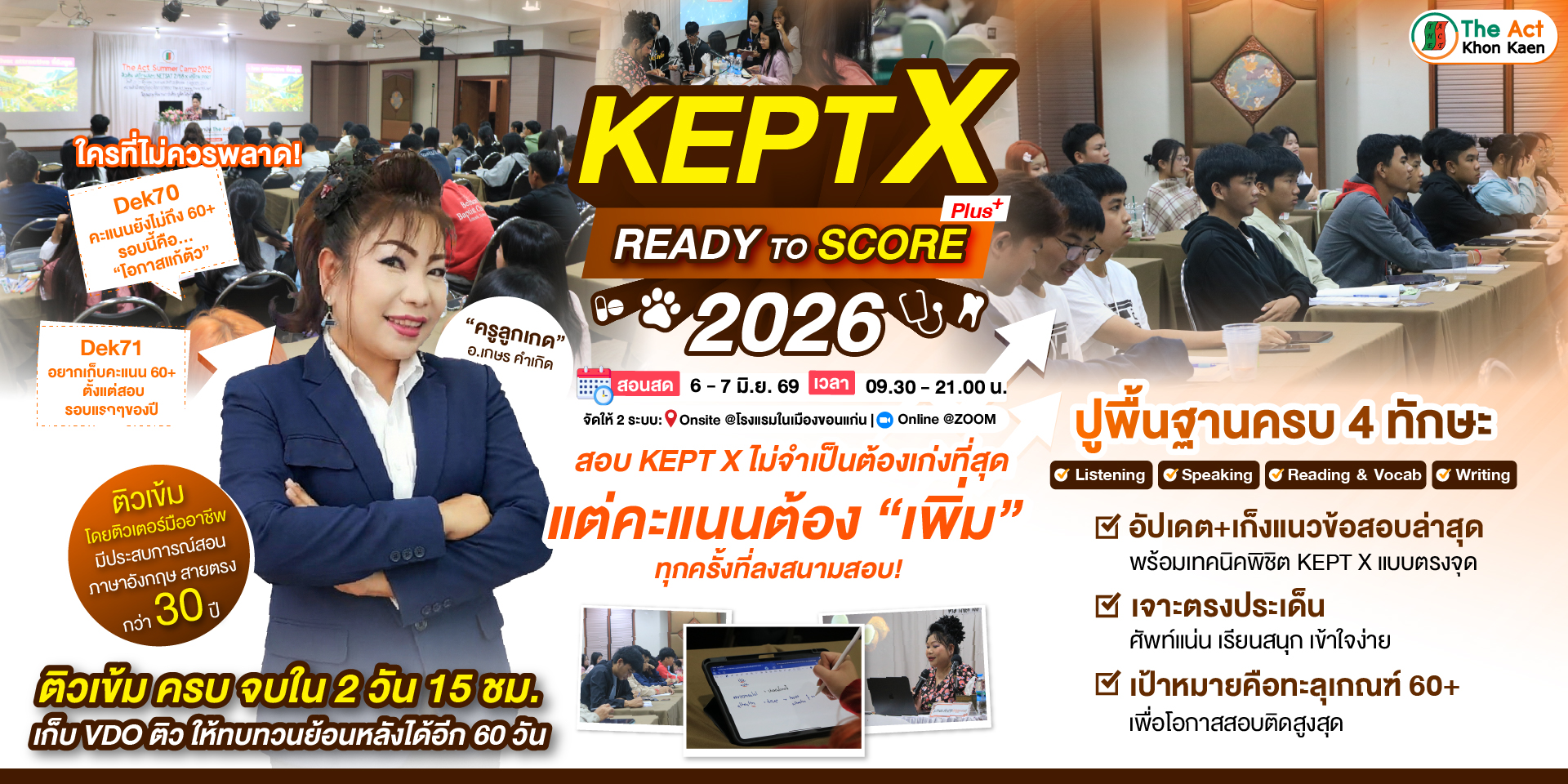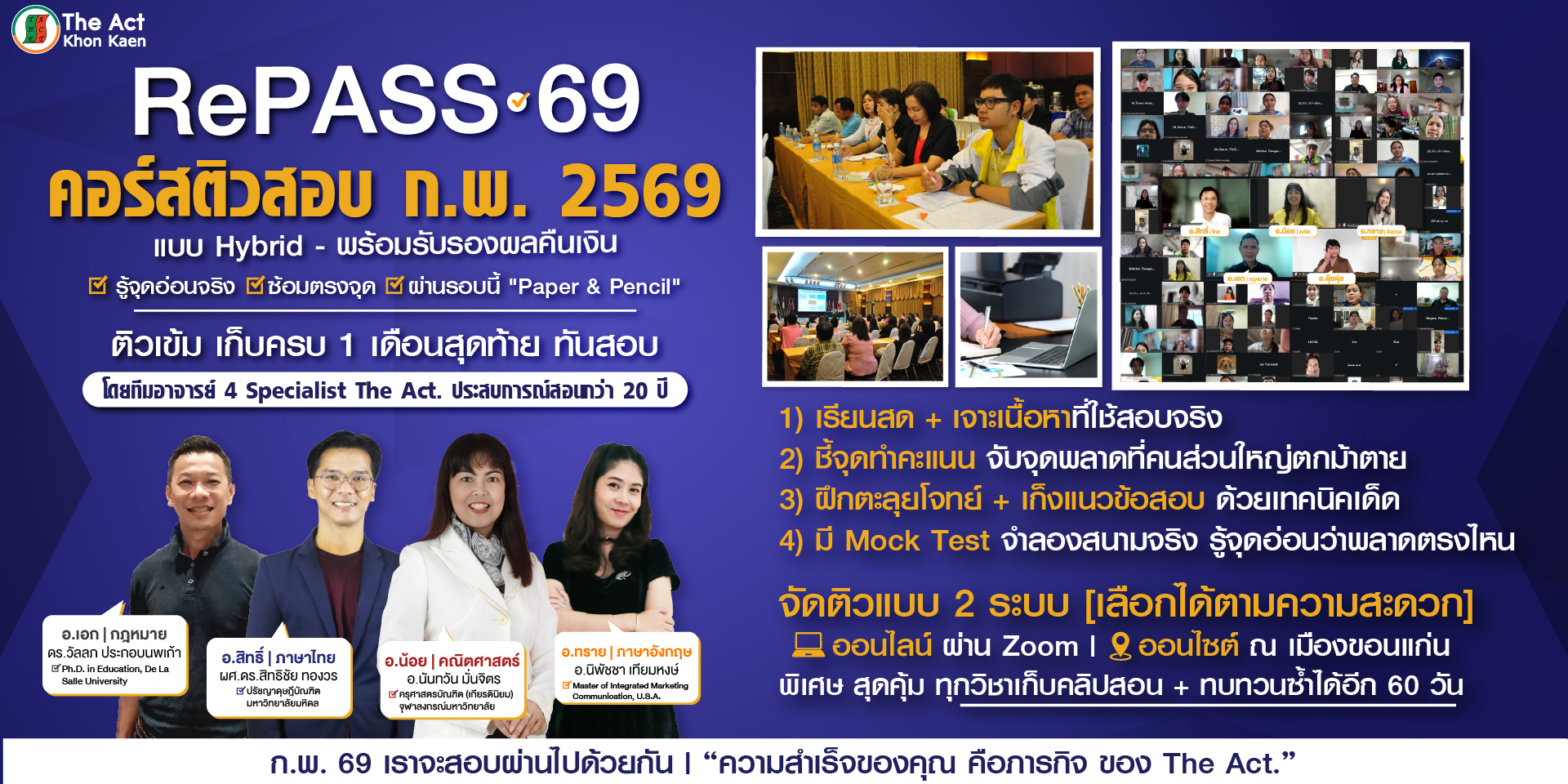 The Act. ได้รับความเชื่อมั่น ไว้วางใจ จากน้องๆ นักเรียน ผู้ปกครอง คุณครูและ โรงเรียน เราคือผู้นำด้านการจัดค่ายวิชาการสุดเข้มข้น เตรียมน้องเข้าสายแพทย์-วิทย์สุขภาพ พร้อมแนะแนวตรงเป้า สู่มหาวิทยาลัยชั้นนำ NETSAT / PORT / QUOTA / ADMISSION / TCAS ผลิตสื่อเรียนคุณภาพ และส่งต่อความรู้สู่น้อง ๆ นักเรียน 20 จังหวัดทั่วภาคอีสาน เพราะอนาคตที่ใช่...ต้องเริ่มจากการเตรียมตัวที่แม่นยำ
