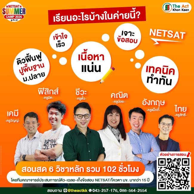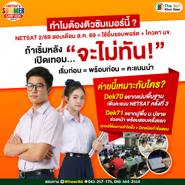 #TCAS70 #TCAS71 #DEK70 #DEK71 #ติวปิดเกมNETSAT #TheActขอนแก่น #NETSATทุกคณะมขใช้ #Dek70พร้อมติด #Dek71พร้อมลุย #theactkk #TheActKhonkaen #ทีมมข #KKU #เตรียมสอบ